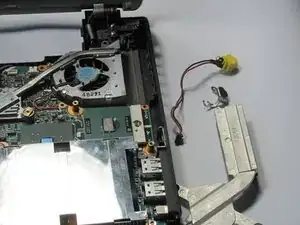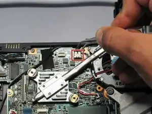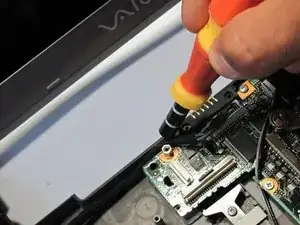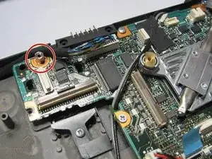 Удалите винт рядом с жёлтым штекером питания.
