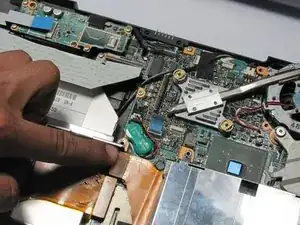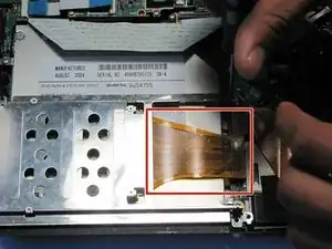 Отсоедините ленточный кабель дисплея, поддев нейлоновой лопаткой.