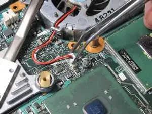 Отсоедините провод вентилятора от платы.