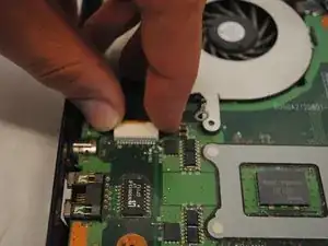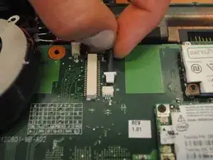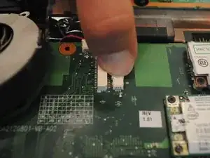 Ленточный кабель необходимо отключить, чтобы снять клавиатуру.