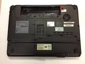 Найдите винт с плоской головкой длиной 6 мм в правом верхнем углу нижней части ноутбука.