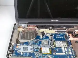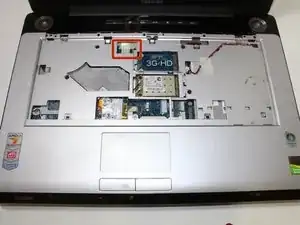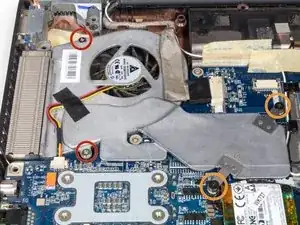 Найдите вентилятор в верхнем левом углу внутренней части ноутбука.