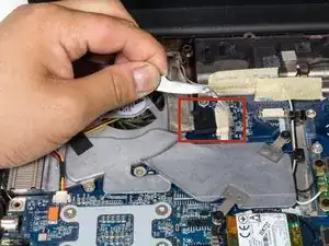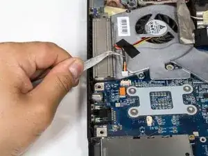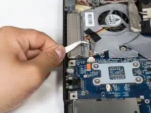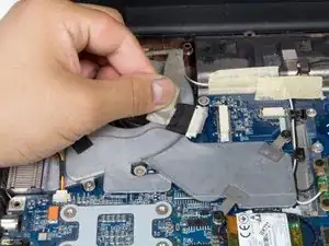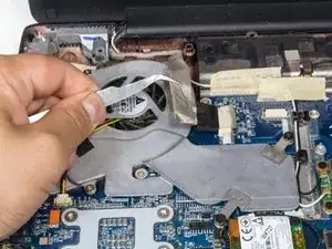 Поднимите вентилятор и извлеките его из ноутбука.