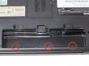 Снимите три винта Phillips #1 длиной 3 мм внутри отсека батареи.