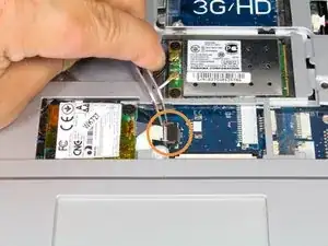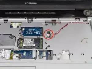 Найдите кабель в нижнем левом углу паза для клавиатуры.