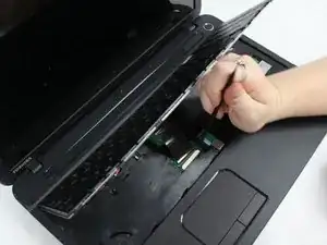 Используйте пластиковый инструмент для вскрытия, чтобы снять клавиатуру с ноутбука.