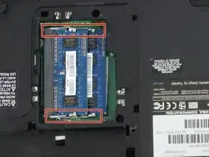 Возьмите нейлоновую лопатку и отожмите защёлки, чтобы освободить оперативную память.