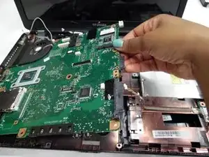 Выдвиньте дисковод, чтобы он не мешал снятию материнской платы.