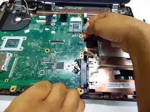 Удалите все проводные компоненты, подключённые к материнской плате, которые мешают её снятию.