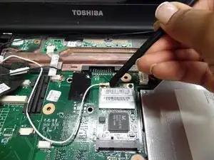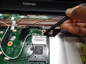 Подденьте разъем антенного кабеля прямо вверх от платы с помощью плоского края лопатки.