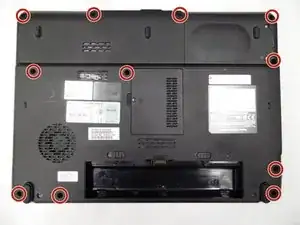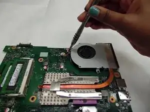 Открутите все винты, прикрепленные к материнской плате, включая три типa винтов: крестообразные PH1 длиной 4,9 мм, 10,7 мм и 4,3 мм.