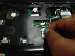 Осторожно вытяните ленточный кабель из его разъема, чтобы отсоединить его от материнской платы.