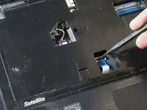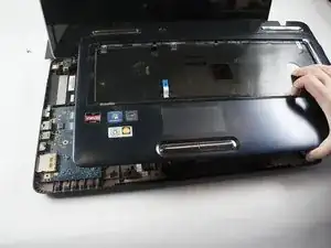 Медленно поднимите клавиатуру с помощью монтажного инструмента и откиньте её в сторону тачпада.