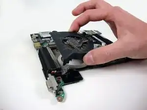 Снимите материнскую плату, приподняв левую сторону вверх.