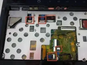 Осторожно отсоедините четыре синих ленточных кабеля пинцетом. Для некоторых лент может потребоваться поднять защёлку, поскольку она фиксирует ленту.