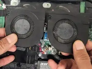 Используйте это руководство для замены вентилятора в Acer Nitro 5 AN515-53-52FA. Прежде чем начать, откройте компьютер и используйте баллон с воздухом для очищения вентилятора.