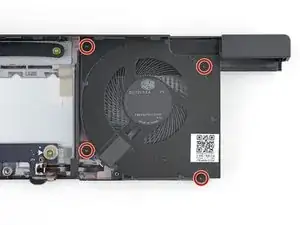Используйте отвёртку Framework, чтобы ослабить четыре фиксированных винта Torx T5, крепящих вентилятор.