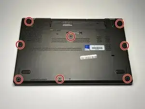 Используя крестовую отвёртку Phillips #0, открутите восемь винтов длиной 7 мм, удерживающих заднюю панель на T560.