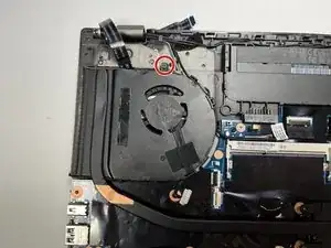 Используя крестовую отвёртку Phillips #0, открутите винт длиной 3.5 мм, фиксирующий вентилятор в корпусе.