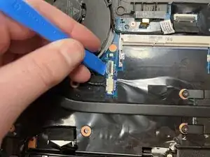 С помощью инструмента iFixit для вскрытия отщёлкните соединение кнопки питания от материнской платы.