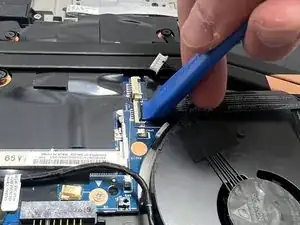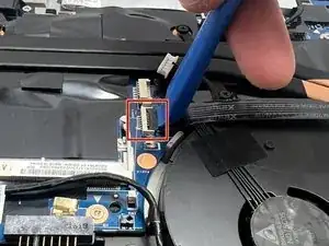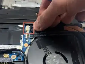 Пальцами или лопаткой отключите кабель батареи от материнской платы.