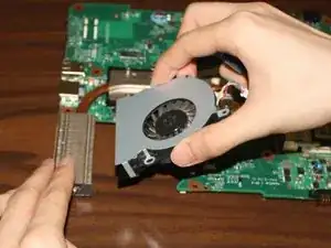 Для замены вентилятора в вашем устройстве необходимо снять жёсткий диск, клавиатуру, крышку материнской платы и саму материнскую плату.