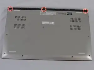 Переверните ноутбук иProceed to remove the seven 5mm silver JIS #1 head screws. Если некоторые винты трудно вынуть, используйте пинцет для помощи.