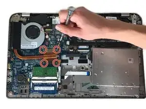 Снимите нижнюю крышку ноутбука. Инструкции по этому шагу см. в Руководстве по снятию задней крышки Toshiba Satellite P55-A5312