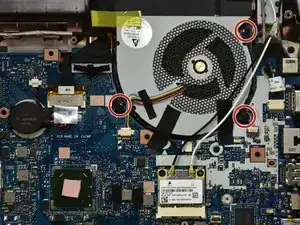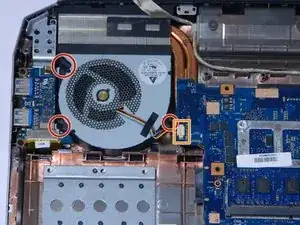 Удалите три чёрных винта, удерживающих вентилятор на месте.