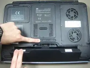 Начните с переворачивания ноутбука, чтобы увидеть нижнюю часть компьютера.