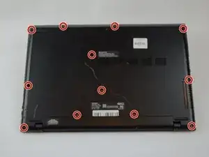 Удалите 12 винтов, фиксирующих заднюю крышку к ноутбуку, с помощью отвертки Phillips #1.