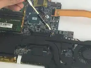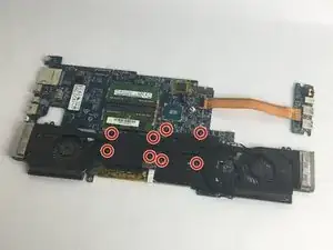 Это сложная процедура, требующая времени. Чтобы добраться до вентилятора материнской платы, материнскую плату необходимо полностью отключить от ноутбука. После того как материнская плата отключена и извлечена из корпуса, вы сможете отключить вентилятор и заменить его. Все шаги необходимо выполнять аккуратно, чтобы избежать повреждения проводки.