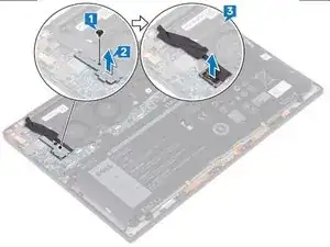 3- Отсоедините и поднимите кабель веб‑камеры с материнской платы. Потребуется удалить клейкую ленту, прикрепляющую кабель.