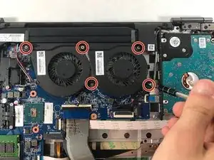 Два вентилятора охлаждения закреплены в системе 5 винтами. Открутите эти пять винтов длиной 1,2 мм с помощью отвертки Phillips #0.