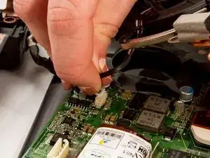 Возьмитесь пинцетом за кабель питания и отсоедините его от антенны беспроводной сети.