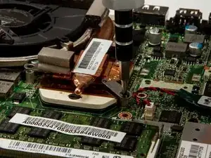 Эти винты затянуты плотно, так как держат критический компонент на процессоре. Возможно, потребуется приложить немного больше усилий, чтобы их открутить.