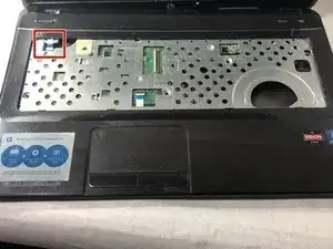 Найдите кабель кнопки питания в верхнем левом углу узла верхней крышки.