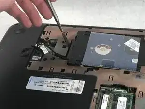 Отверткой Phillips #0 отвинтите крепёжный винт оптического привода.