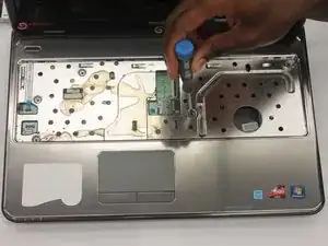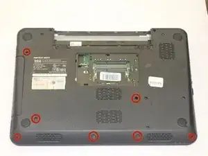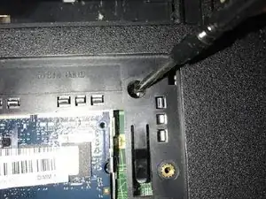 Снимите винт, удерживающий клавиатуру, с нижней части ноутбука.