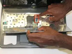 Поднимите черную закладку и затем потяните влево за разъем клавиатуры, чтобы освободить клавиатуру.
