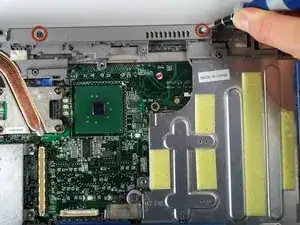Используя крестовую отвёртку Phillips #1, выкрутите винты в верхней части клавиатуры, как показано.