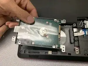 Снимите винты, крепящие жёсткий диск к ноутбуку.