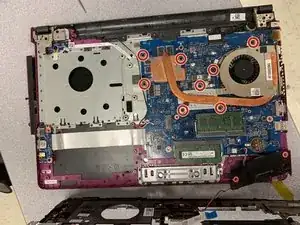 Отвинтите следующие винты, крепящие материнскую плату и радиатор.