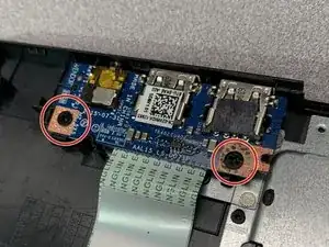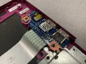 Открутите два винта, фиксирующие плату ввода-вывода (I/O) к ноутбуку.