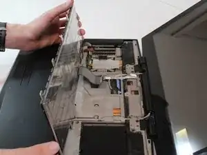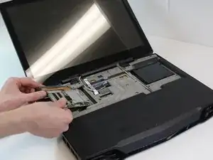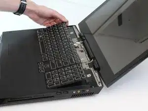 Не пугайтесь, если кабели уже отсоединены. При подъёме клавиатуры кабели могут отсоединиться сами по себе — фиксаторы требуют очень небольшого усилия для открытия.