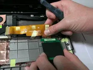 Отключите шлейф, расположенный под клавиатурой.