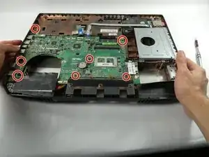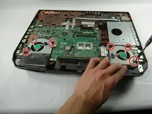 Отверткой Phillips #00 отверните семь винтов 4.0 мм, фиксирующих материнскую плату в корпусе.