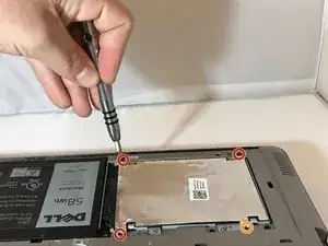 Удалите три черных винта PH1 длиной 6 мм, которые крепят жесткий диск.