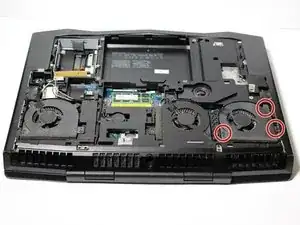 В ноутбуке Alienware M18x расположены три внутренних вентилятора. В этом руководстве будет показано, как удалить указанные вентиляторы.