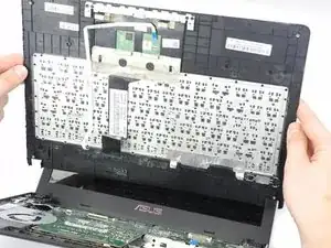 Переверните ноутбук обратно и начните поддевать крышку клавиатуры от корпуса с помощью пластиковой лопатки.